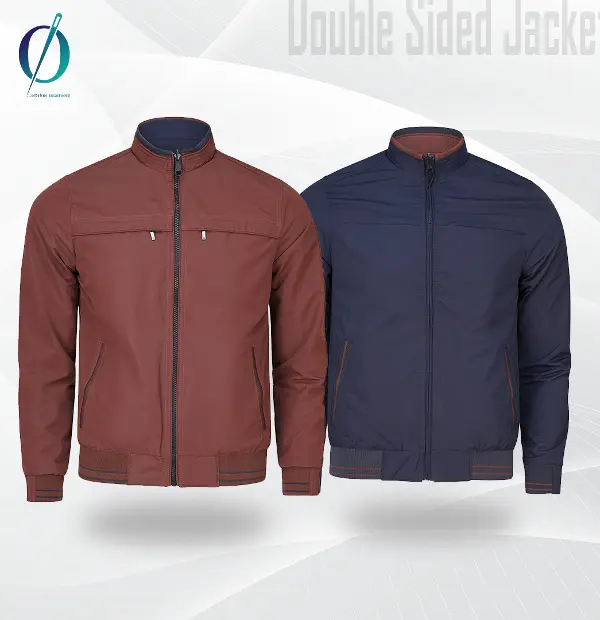 Double-sided jacket can be worn with either side facing outward, offering versatility in style.